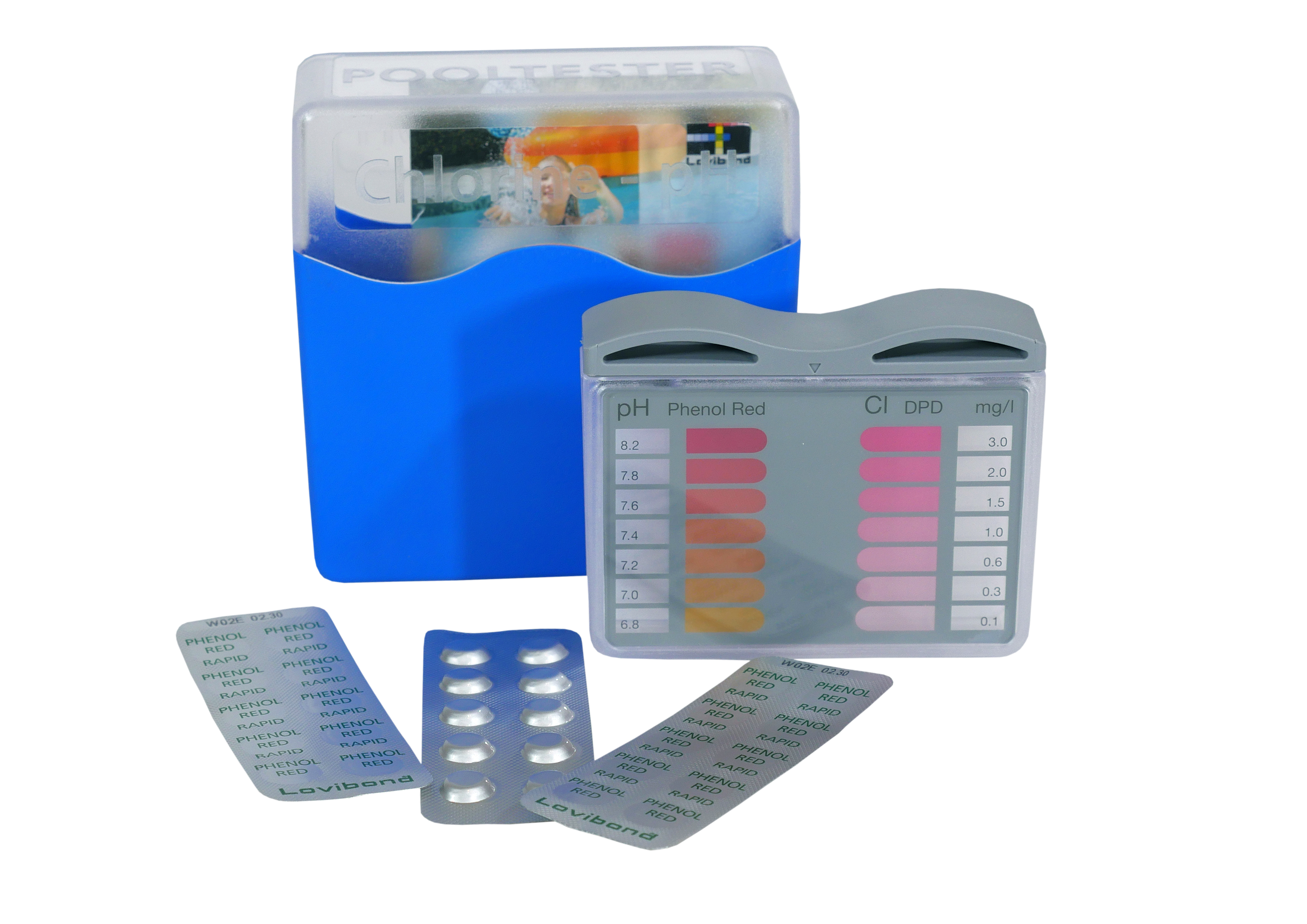 Современный тестер Хлор / pH 03253 AstralPool для измерения хлора и рН в воде. Поставляется в практичной упаковке с современным дизайном в комплекте с таблетками фенола и DPD-1.